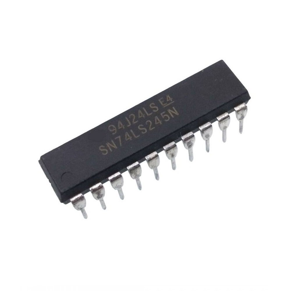 Circuito integrado TTL 74245. Transmisor con ocho entradas. Es un receptor asíncrono de 8 líneas de 2 vías de comunicación entre los buses de datos. Entrada de la dirección (DR) controla la transmisión de datos desde el bus A al bus B o B bus a un autobús. Dependiendo de su nivel lógico la entrada de habilitación (E) se puede utilizar para aislar a los buses.