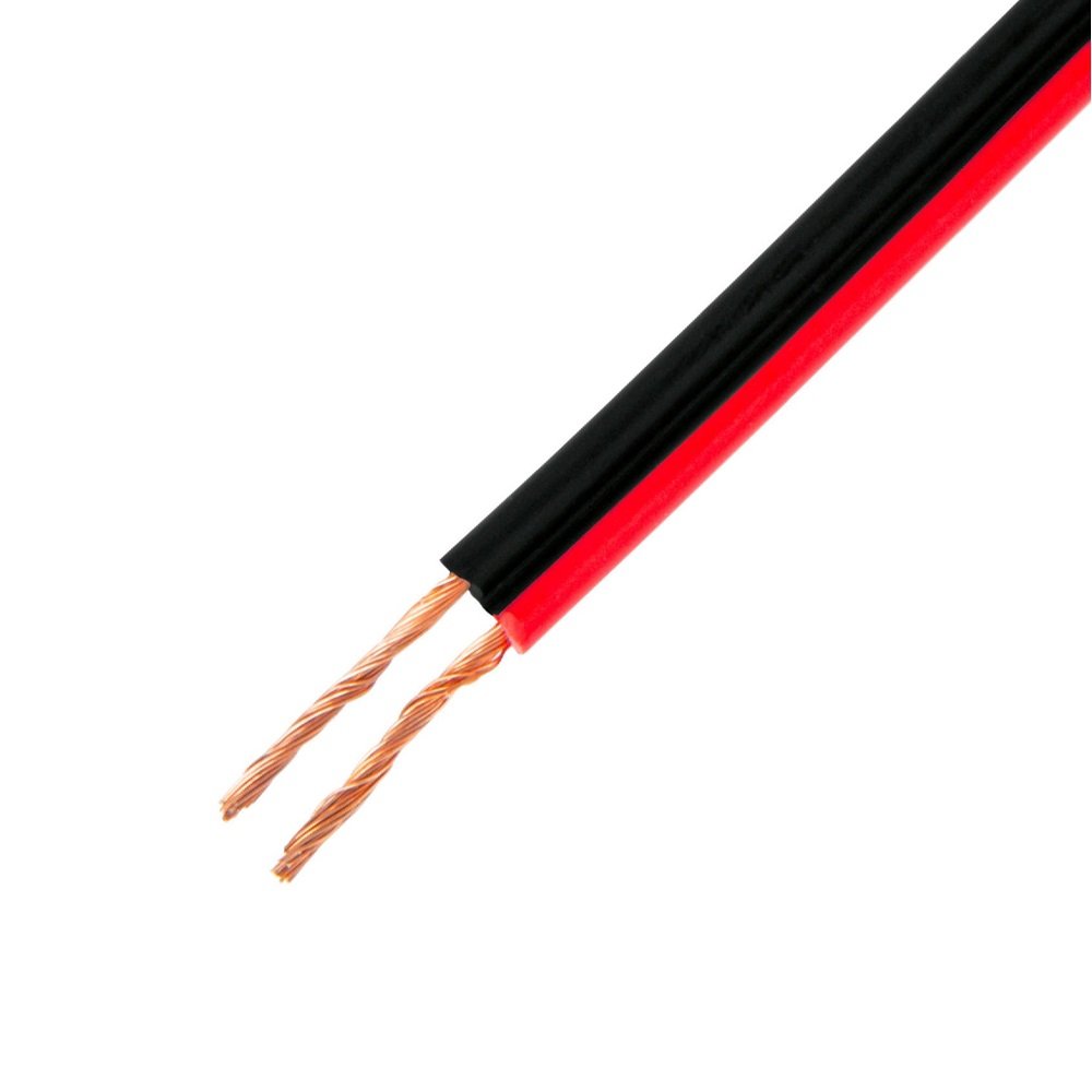 Cable bicolor duplex, de calibre 22 AWG, útil para la conexión entre bocinas y equipos de sonido.