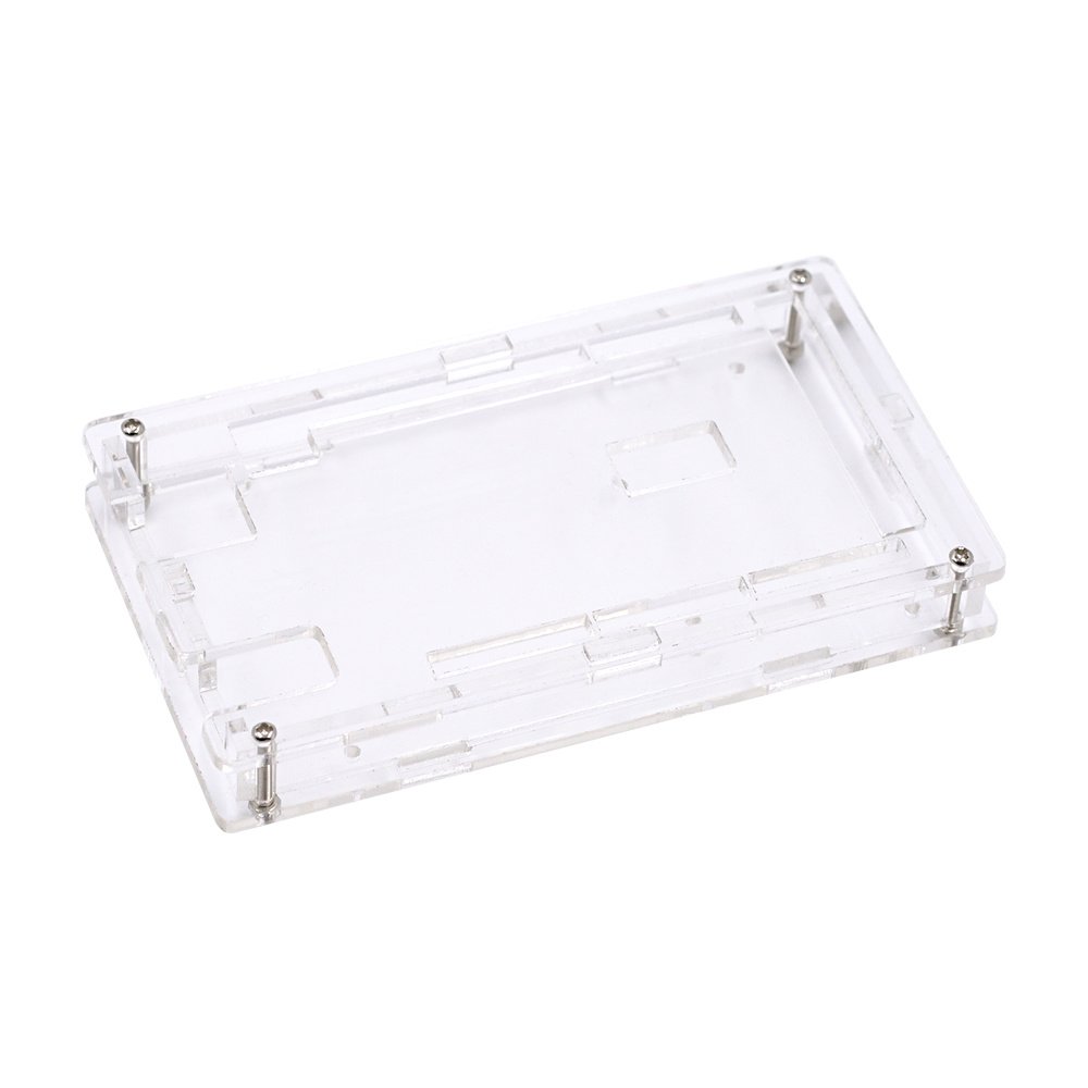 El gabinete o carcasa de acrílico protege tu tarjeta Arduino Mega 2560. Esta elaborado con piezas de acrílico transparente cortadas con láser. Viene incluido todo lo necesario para armar el gabinete, aunque el ensamble debe realizarlo el usuario final.