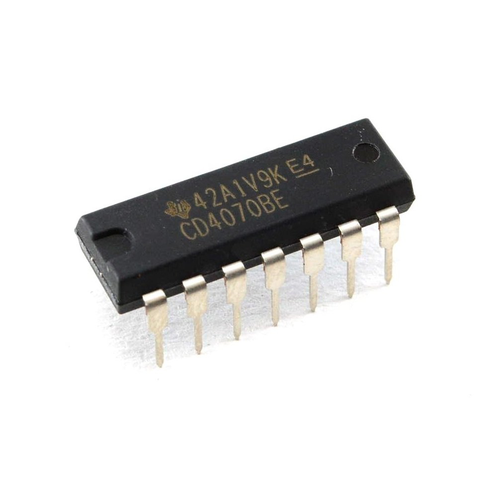 Circuito integrado CMOS CD4070. Cuatro compuertas OR exclusivas de 2 entradas.