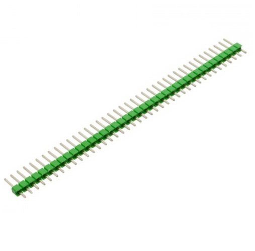 Conector tipo Header macho sencillo de 40 pines. Puede ser cortado en cualquier tamaño. Ideal para ser empleado en tus circuitos impresos (pcb).