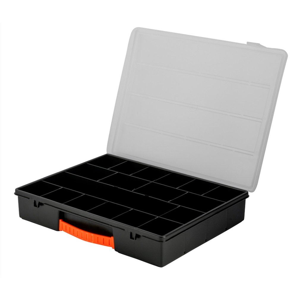 Es el elemento ideal para mantener ordenados varios accesorios como tornillos, tuercas y hasta monedas. Esta fabricada de polipropileno, característica que la hace muy resistente a golpes y garantiza una larga duración a través del tiempo. Gracias a sus ganchos de plástico mantendrás siempre en su lugar cada cosa evitando que estas se salgan de la caja y se extravíen.