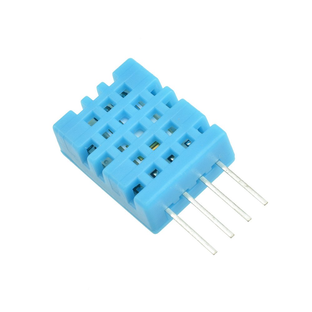 El DHT11 es un sensor de temperatura y humedad digital de bajo costo. Utiliza un sensor capacitivo de humedad y un termistor para medir el aire circundante, y muestra los datos mediante una señal digital en el pin de datos (no hay pines de entrada analógica). Es bastante simple de usar, pero requiere sincronización cuidadosa para tomar datos.